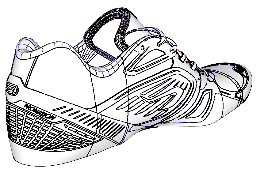 Les premières étapes furent de modéliser la tige de la chaussure de manière la plus réaliste possible grâce à un prototype. (semelle modélisée par le fournisseur)